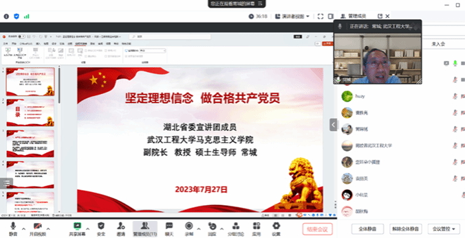 (通讯员 李齐)727日,按照学校党委关于学习贯彻习近平新时代中国特色社会主义思想主题教育的安排,学院党委关于学习贯彻习近平新时代中国特色社会主义思想主题教育的部署,湖北省委宣讲团成员、学院院副院长、硕士生导师常城教授通过腾讯会议为“原理”党支部的全体党员教师讲授专题党课。