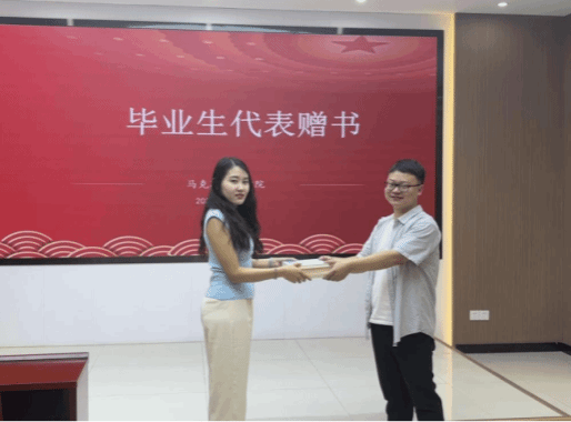 赠予一本启迪书籍,传递浓浓嘱托:毕业生党员筹集多本对学弟学妹们未来的学习和生活有所帮助的书籍,借本次活动机会赠予学弟学妹们。在赠书仪式上,毕业生代表丁薇向在校学生代表陈斌进行赠书,并向学弟学妹们送上自己最真挚的祝福。(审核:刘卫民 陈俊)