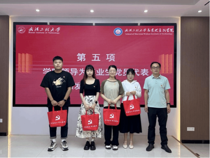 发放一份党员纪念,铭记党员身份:学院党委副书记陈俊为毕业生党员代表发放党员纪念包。一份党员纪念不仅是对他们学校生活的纪念,也是对他们未来道路的祝福。希望党员们继续秉承“博闻求是、厚德砥行”的院训,坚守本心、不褪本色,以实干笃定前行,在各自的岗位上继续发光发热,以实际行动为母校争光、为党徽增彩。