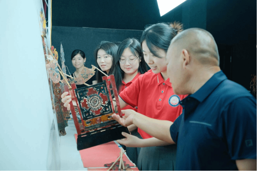 一个小戏台,一块白色的幕布,一束投射的灯光,一个木箱,几个艺人,一出好“戏”就开场了。在江汉平原皮影戏传习所,江汉平原皮影戏艺人为我们带来了《薛丁山三请三休樊梨花》。舞台前,实践团成员被皮影戏独特的艺术风格和表演特色所吸引,沉浸在皮影戏极具艺术魅力的精彩表演中。走进后台,方寸天地间更是让人所感震撼。皮影戏艺人分别手持支撑杆和操纵杆,以支撑杆掌握身体的动态平衡,以操纵杆带动四肢活动,灵活操纵手中的皮影,再配以音乐锣鼓及说唱,“皮影人”便生动舞在屏幕上进行故事表演。为让实践团成员沉浸式体验皮影的乐趣、感受非遗文化的魅力,江汉平原皮影戏传承人王海荣为我们提供了皮影戏《拔萝卜》片段皮影形象,让我们选择自己喜欢的人物进行表演。演绎过程中,他指导我们运用不同的手法和技巧通过操控“皮影人”来模仿“拔萝卜的力度”演绎“皮影人们团结一致拔萝卜的画面”等故事情节,“拔萝卜,拔萝卜,嘿呦嘿呦拔萝卜……”每一个走位翻转、每一声配乐拟声、每一次眼神交流,都是青年学子对皮影戏的古老故事的重新演绎,也是对非遗文化的深情致敬。作为表演者之一的实践团成员邹建婷同学表示:皮影戏体验真的很精彩,希望皮影戏能够经常进学校,我们都能够有机会再参加皮影表演的学习。