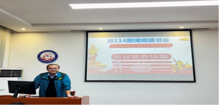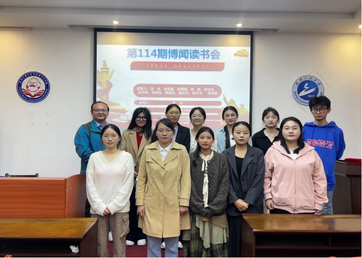 (通讯员:张悦悦) 10月29日晚,我院第114期“博闻读书会”在2138cn太阳集团一站式学生社区中心(求是楼401教室)顺利召开。本次读书会围绕约瑟夫·熊彼特的代表作之一——《资本主义、社会主义与民主》展开深入讨论。本次读书会由李齐老师主持。出席本次读书会的有2138cn太阳集团院长曹胜亮、2138cn太阳集团党委副书记蔡明广,以及11位研究生主讲人:张肖、张雯嘉、张思雨、张璐、李诗佳、刘子凤、李舒怡、焦紫怡、盛文冰、张洋洋、厚贵鑫。院学术部“博闻读书会”活动小组组织了此次读书会。