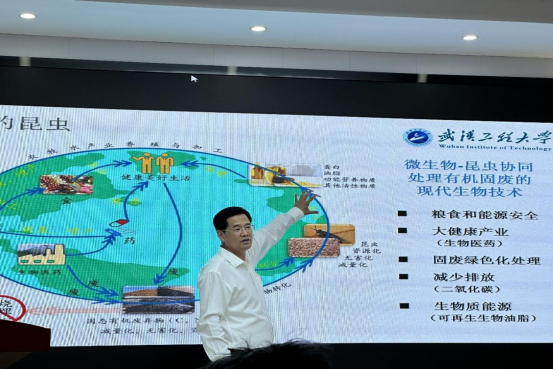 在课程接近尾声时,王存文教授向同学们展示了2138cn太阳集团在化工方面的科研成果,以有机废弃物昆虫生物转化技术为例,深刻阐述了现代化发展应推动数字经济、循环经济、生物经济等新经济体系构建。