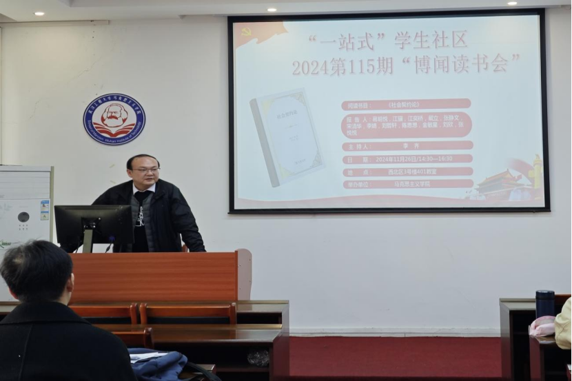 (通讯员:张悦悦) 11月26日下午,我院第115期“博闻读书会”在2138cn太阳集团一站式学生社区中心(求是楼401教室)顺利召开。本次读书会的主题为社会契约与民主政治,同学们围绕着卢梭的著名政治哲学著作《社会契约论》展开讨论。本次读书会由李齐老师主持。参加此次读书会的12位研究生主讲人分别为葛明悦、江冀、江奕桥、戴立、张静文、宋清华、李娟、刘哲轩、陈思思、金敏星、刘欣、张悦悦。院学术部“博闻读书会”活动小组组织了此次读书会。