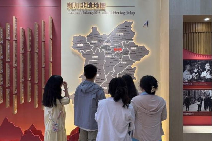 利川市拥有丰富的非物质文化遗产,包含传统舞蹈、传统音乐、传统技艺,如肉连响、灯歌、利川竹编、麻糖制作技艺等。走进利川市非遗展示馆,实践队员们穿梭于形式多样的非遗展品中,学习、了解少数民族地区独特的文化基因,感悟非物质文化遗产与现代科技交融的文化发展之美。队员们结合新媒体传播特点,策划了“记录非遗”小视频和新闻稿,让肉连响,灯歌等传统艺术在社交平台传播。实践队员们触摸的不仅是土家族的文化记忆,更是中华民族共同体的生命律动。