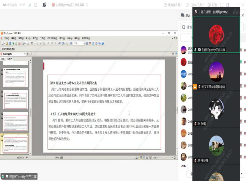 本次活动聚焦“欧洲工人运动中的机会主义及其批判”主题,以列宁《怎么办?》为核心研读书目,由彭颜红教授主讲,李齐老师主持,学院23级、24级、25级全体研究生共同参与。