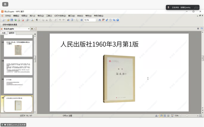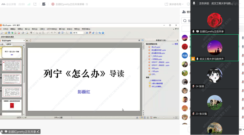 随后,彭颜红教授向同学们介绍了《怎么办?》的写作背景。她指出,这部重要著作是列宁在与经济派的斗争中写下的具有战斗性的著作,是关于建立新型无产阶级政党的重要论述,具有极高的历史价值。