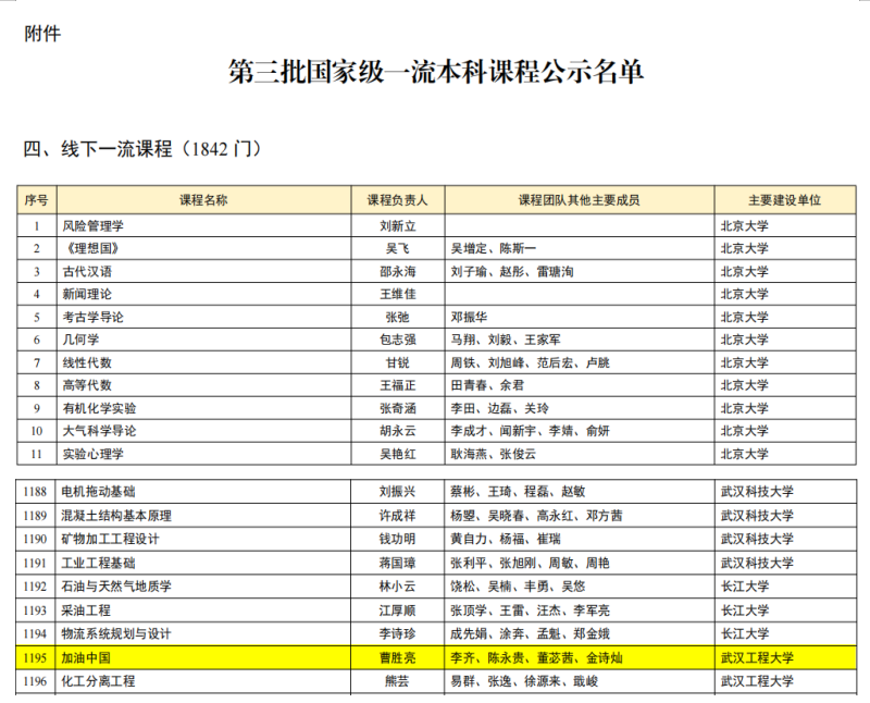 (通讯员:常城)近日,教育部公布第三批国家级一流本科课程认定结果,由我院院长曹胜亮教授负责、多位骨干教师共同参与的大型思政公选课《加油中国》成功入选。至此,我院已拥有3门国家级一流本科课程。