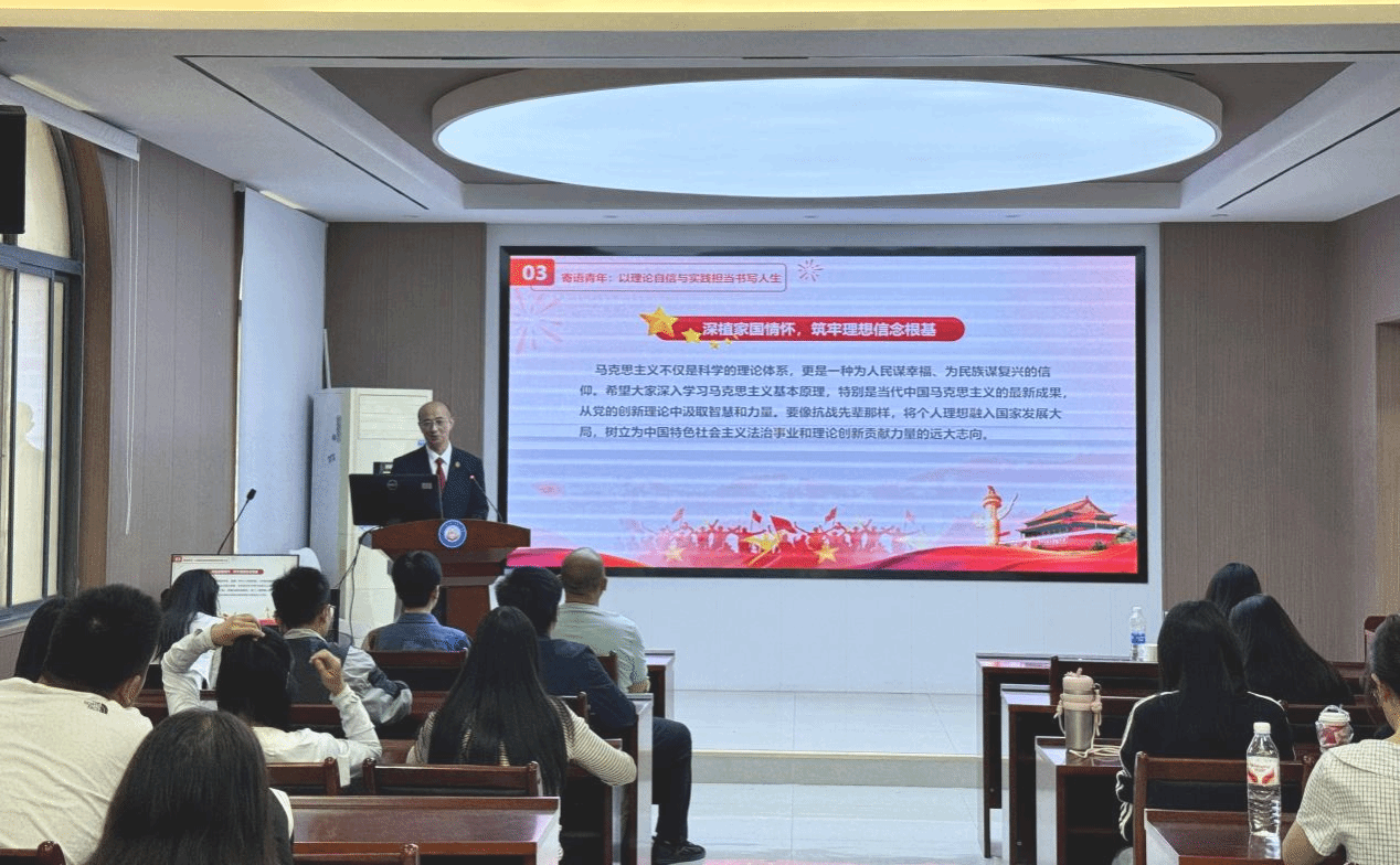宣讲最后,张卫疆庭长对青年学子提出殷切期望:要深刻理解中国法治的真实图景,扎根国情民情;要锤炼解决实际问题的能力,将马克思主义理论与实践结合;要永葆理想主义与人文情怀,在法治建设中坚守初心。他的话语真挚恳切,为新生未来的职业发展与人生选择提供了宝贵指引。