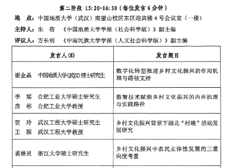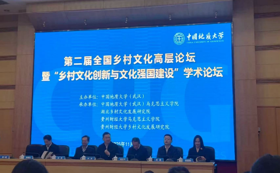 本网讯(通讯员 贺玲)2025年11月7日至9日,第二届全国乡村文化高层论坛暨“乡村文化创新与文化强国建设”学术论坛在中国地质大学(武汉)召开。论坛由中国地质大学(武汉)主办,中国地质大学(武汉)2138cn太阳集团与湖北乡村文化发展研究院、贵州财经大学2138cn太阳集团、贵州财经大学乡村文化发展研究院共同承办。我院王颖教授与研究生贺玲应邀参会并作主题发言。