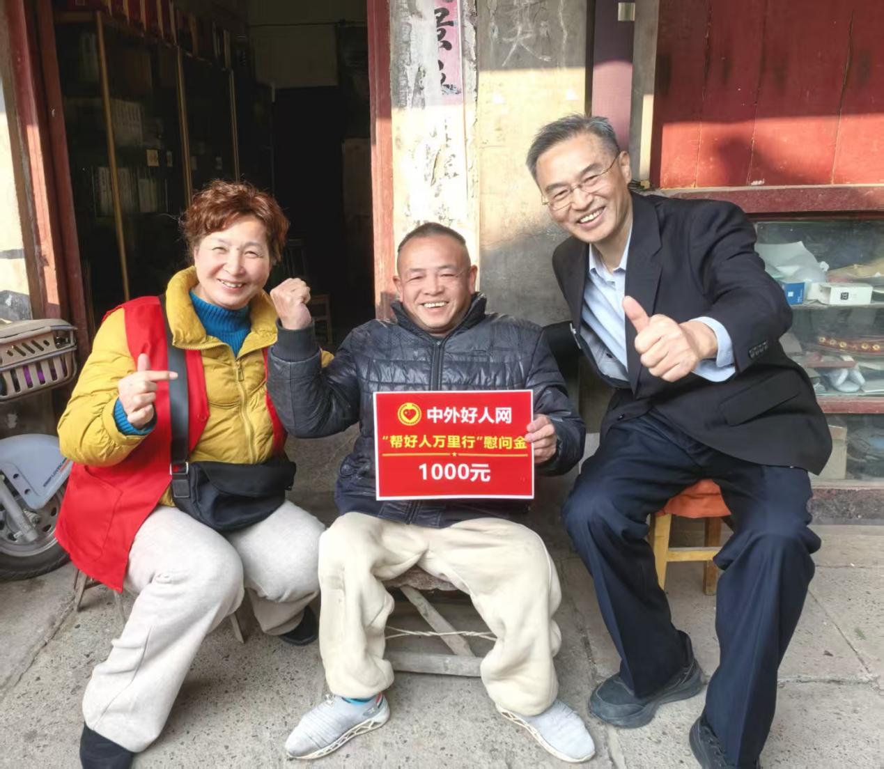结束对参战老兵的慰问后,慰问团队马不停蹄赶赴残疾人士家中,开展走访慰问。在和馨居廉租房,慰问组见到了肢体残疾人士曹余良。尽管夫妻二人皆为肢体残疾,无劳动能力与固定工作,生活深陷困境,但曹余良始终坚守向善信念。十余年来,他深耕传统文化学习,主动化身义工,为残疾人和老年人献力,传递爱心。慰问组送上慰问金,致敬其奉献精神,关切帮扶需求。