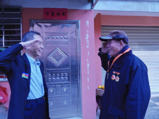 在官柳小区,慰问组探访老兵夏腊春。1978年入伍的他,1984至1985年参战老山、者阴山对越自卫反击战,所在连立二等战功。如今他仍珍藏着当年军装,胸前勋章熠熠生辉,还主动让出低保名额,称身为退伍军人已受优待。
