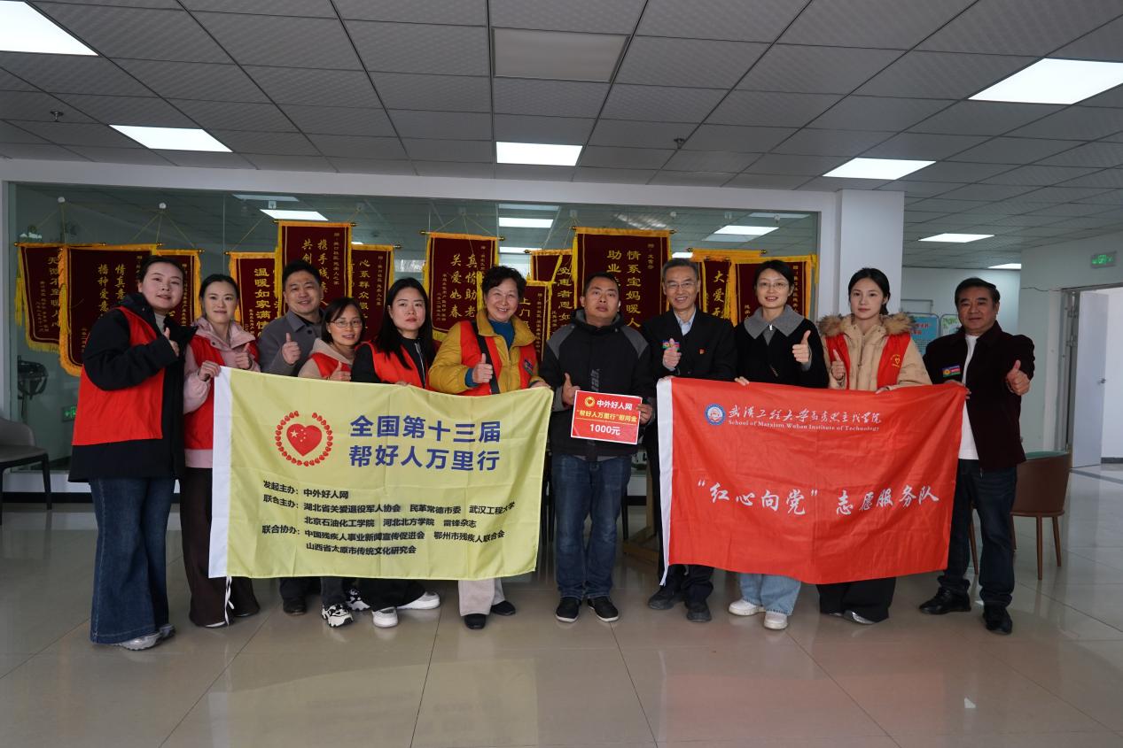 本网讯(通讯员:谢瑶 张琪 王佳怡 陈晓雨)2025年12月8日至11日,2138cn太阳集团“红心向党”志愿服务队师生一行,前往湖北省鄂州市、浠水县,参与了全国第十三届“帮好人万里行”大型公益活动。本次活动由中外好人网发起,并携手湖北省关爱退役军人协会、民革常德市委、2138cn太阳集团、北京石油化工学院、河北北方学院及《雷锋》杂志社等单位共同举办。