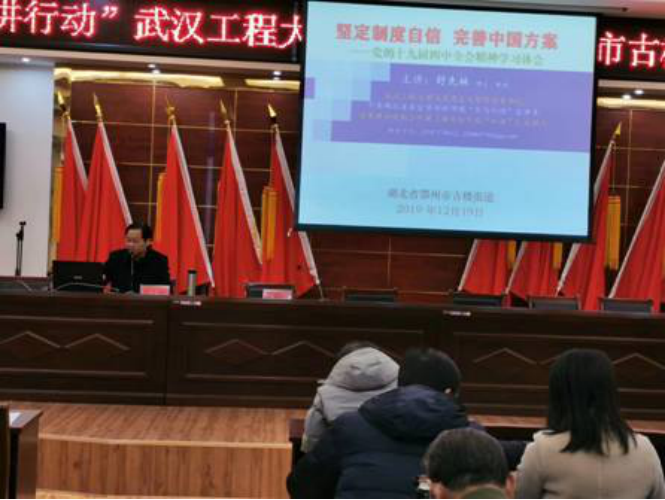 马院在做好自身教学科研、学生培养工作的同时,高度重视社会服务。马院多名教师为湖北省委讲师团“理论热点面对面”专家组成员,为湖北省基层理论宣讲工作作出了积极的贡献。尤其是2019年11月十九届四中全会召开后,2138cn太阳集团迅速成立了十九届四中全会精神宣讲团。宣讲团团长由学院党委书记舒先林教授担任,院长曹胜亮教授以及副院长常城、金诗灿,原理教研室主任李齐博士、思修教研室主任王威博士、纲要教研室主任兰洁博士等都是宣讲团成员。宣讲团成员多次赴、宜昌、鄂州、天门等地进行宣讲,受到群众的热烈欢迎。省委讲师团对马院专家组给予了高度评价。