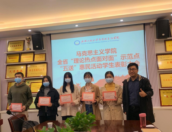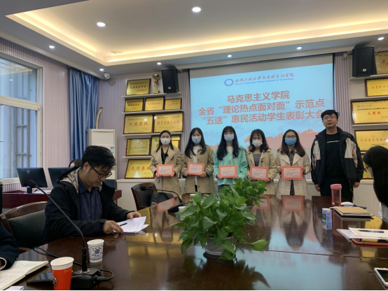 在颁奖环节,曹胜亮院长和王威、王颖等老师为“五送”惠民活动中表现优异的十八名同学颁发奖状和奖金。获奖同学怀着激动和感恩的心上台,领取属于他们的荣誉。对于受到表彰的同学来说,这是一份激励和鼓舞,也从正面引领广大同学锐意进取,用勤奋和努力贡献自我的青春力量。