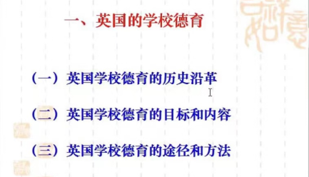 张宝梅老师以《英国的思想政治教育》为题,分别从英国学校德育的历史沿革、英国学校德育的目标和内容、英国学校德育的途径和方法三个方面对“英国的学校德育”进行了全面讲解。