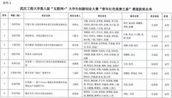 (通讯员:肖雅钰 雷翊君)为培养创新创业人才,持续激发大学生创新创业热情,展示创新创业成果,创新创业学院、教务处、学生处、校团委、研究生院联合主办了2138cn太阳集团第八届“互联网+”大学生创新创业大赛。经学院推荐、校赛组委会组织专家评审,最终评出高教主赛道金奖项目75个、银奖项目115个、铜奖项目127个;“青年红色筑梦之旅”赛道金奖项目10个、银奖项目17个、铜奖项目19个;产业赛道金奖项目7个、银奖项目11个、铜奖项目13个。我院喜获高教主赛道研究生初创组校级金奖1项、“青年红色筑梦之旅”公益赛道校级金奖、校级银奖各1项。