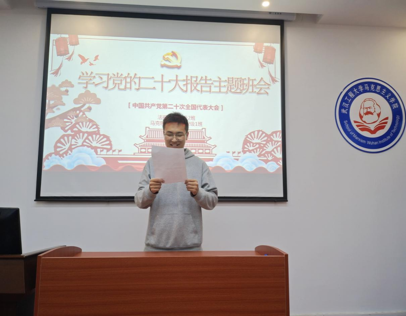 最后,班主任陈俊老师作班会总结。他指出,此次班会不仅是一场学习宣传贯彻党的二十大精神思想交流会,也是两个班级手拉手结对互助的联谊会。作为新时代青年大学生,要积极主动学习宣传贯彻党的二十大精神,原原本本、原汁原味、全面系统、深入思考研学党的二十大报告,自觉将党的二十大精神内化于心,外化于行,把小我融入大我之中,用自己的实际行动学思践悟党的二十大精神。