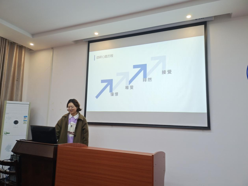林巧同学分享了读研以来“憧憬-难受-释然-接受”的心路历程,发出“自己的青春自己奋斗,自己的人生自己做主”的励志宣言。