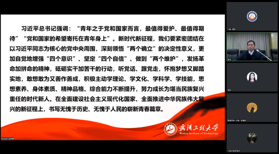 最后,程幼金书记鼓励与鞭策当代青年学子要全面学习、全面把握、全面落实党的二十大精神,自觉用习近平新时代中国特色社会主义思想武装头脑,怀抱梦想又脚踏实地,敢想敢为又善作善成,立志做有理想、敢担当、能吃苦、肯奋斗的新时代好青年。讲课过程中程幼金书记在线上与同学们进行了积极互动,调动大家一起参与问题的探讨和思考,与会师生均深刻感到,程书记的授课主题鲜明、内容翔实、视野开阔,听后更加深入理解了党的二十大蕴含的重要思想、重要观点、重大战略、重大举措,更加深刻认识到党和国家事业取得历史性成就、发生历史性变革的最根本原因在于习近平总书记掌舵领航,在于习近平新时代中国特色社会主义思想的科学指引。大家一致表示,要更加紧密地团结在以习近平同志为核心的党中央周围,不负韶华、不负时代、不负人民,让青春在全面建设社会主义现代化国家的火热实践中绽放绚丽之花!