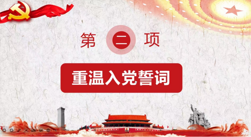 会议第二项,重温入党誓词,由龚雨同志领誓。