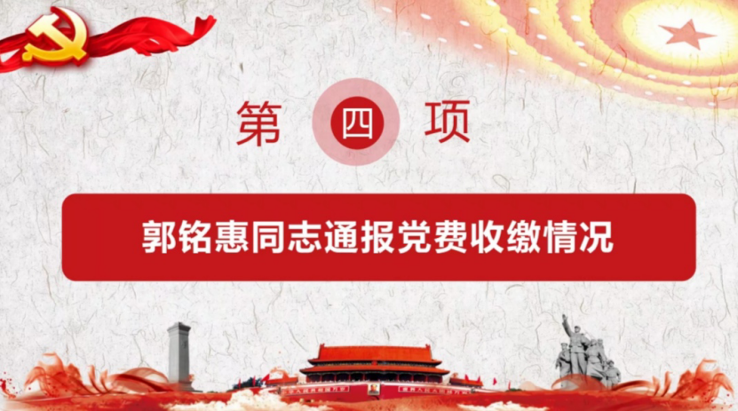 会议第四项,纪检委员郭铭惠同志通报党费收缴情况。