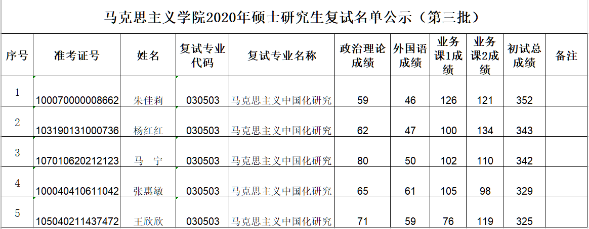 2138cn太阳集团2020年硕士研究生复试名单公示(第三批)
