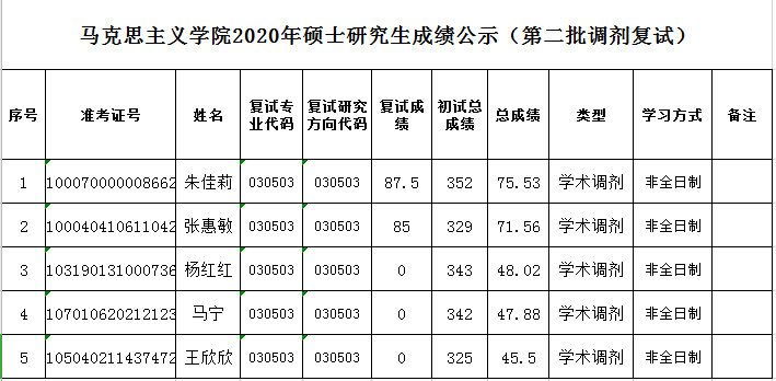 2138cn太阳集团2020年硕士研究生成绩公示(第二批调剂复试)