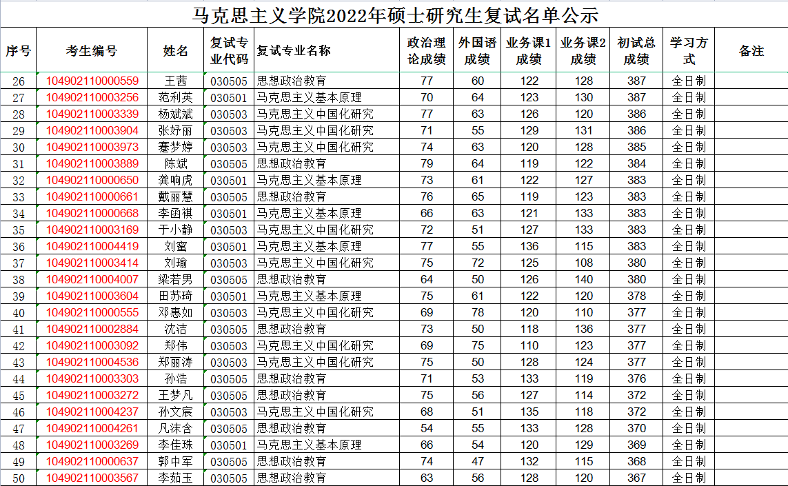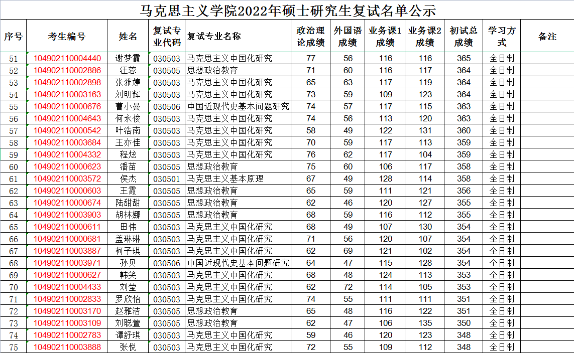 2138cn太阳集团2022年硕士研究生复试名单公示