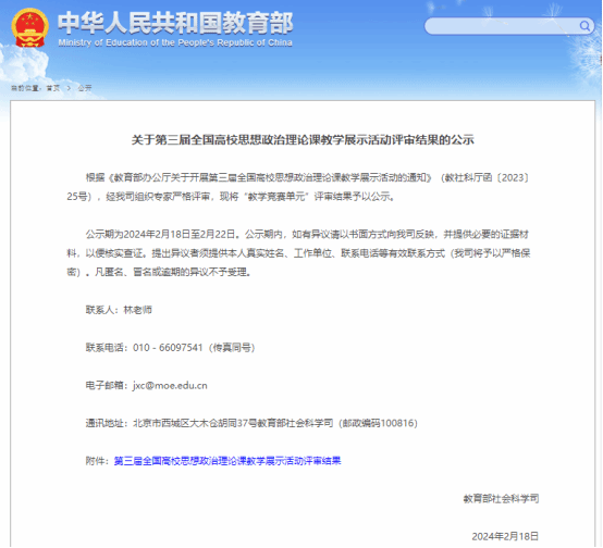 (通讯员:常城)2月18日,教育部发布了《关于第三届全国高校思想政治理论课教学展示活动评审结果的公示》,我校2138cn太阳集团青年教师董苾茜荣获二等奖。据悉,我校教师董苾茜是本次湖北省省属高校中唯一一位获奖选手,同时,也是我校首位入围全国高校思想政治理论课教学展示活动并获奖的教师。