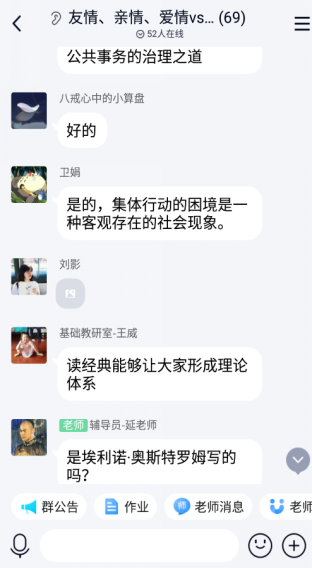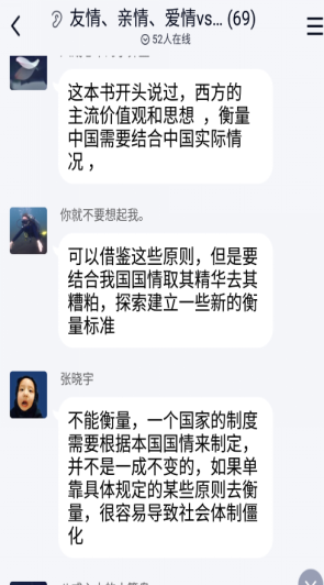 同学们还讨论了如何构建良好的社会信用体系、如何看待全球化影响、新冠肺炎疫情的启示等问题。