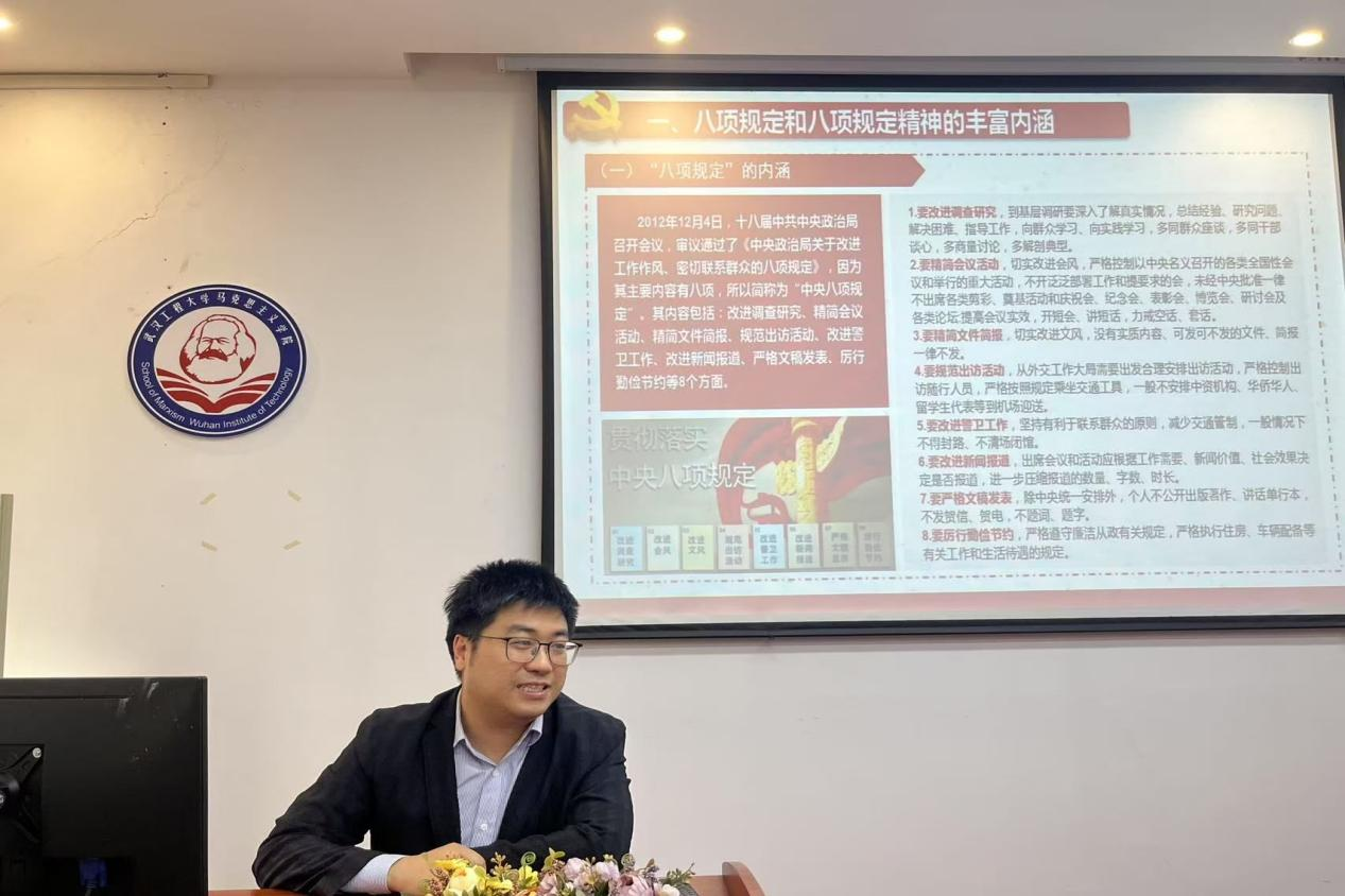 党支部书记蔡明广同志给全体党员上了一堂关于《深入贯彻中央八项规定精神》的党课,要求全体党员认真学习,坚决反对 “四风”,切实改进工作作风,保持党的先进性和纯洁性。