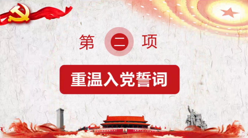 会议第二项,全体党员重温入党誓词,由田雨同志领誓。