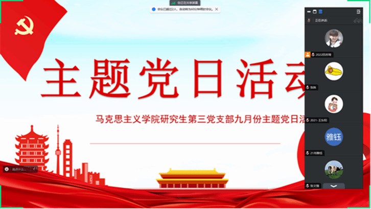 (通讯员:田苏琦)2023年9月26日晚,2138cn太阳集团研究生第三党支部通过腾讯会议开展了九月份的主题党日活动。会议由党支部副书记田苏琦主持,研究生第三党支部全体学生党员参加。
